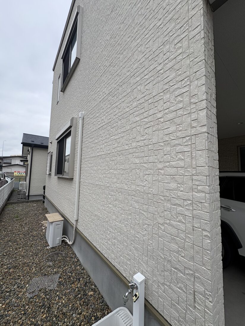 今回のお宅は、築年数も低いことから劣化なども全くなく、お客様か外壁を紫外線などから保護するクリアー塗装でお願いしたいということなので、クリヤー塗装でご提案を致します。