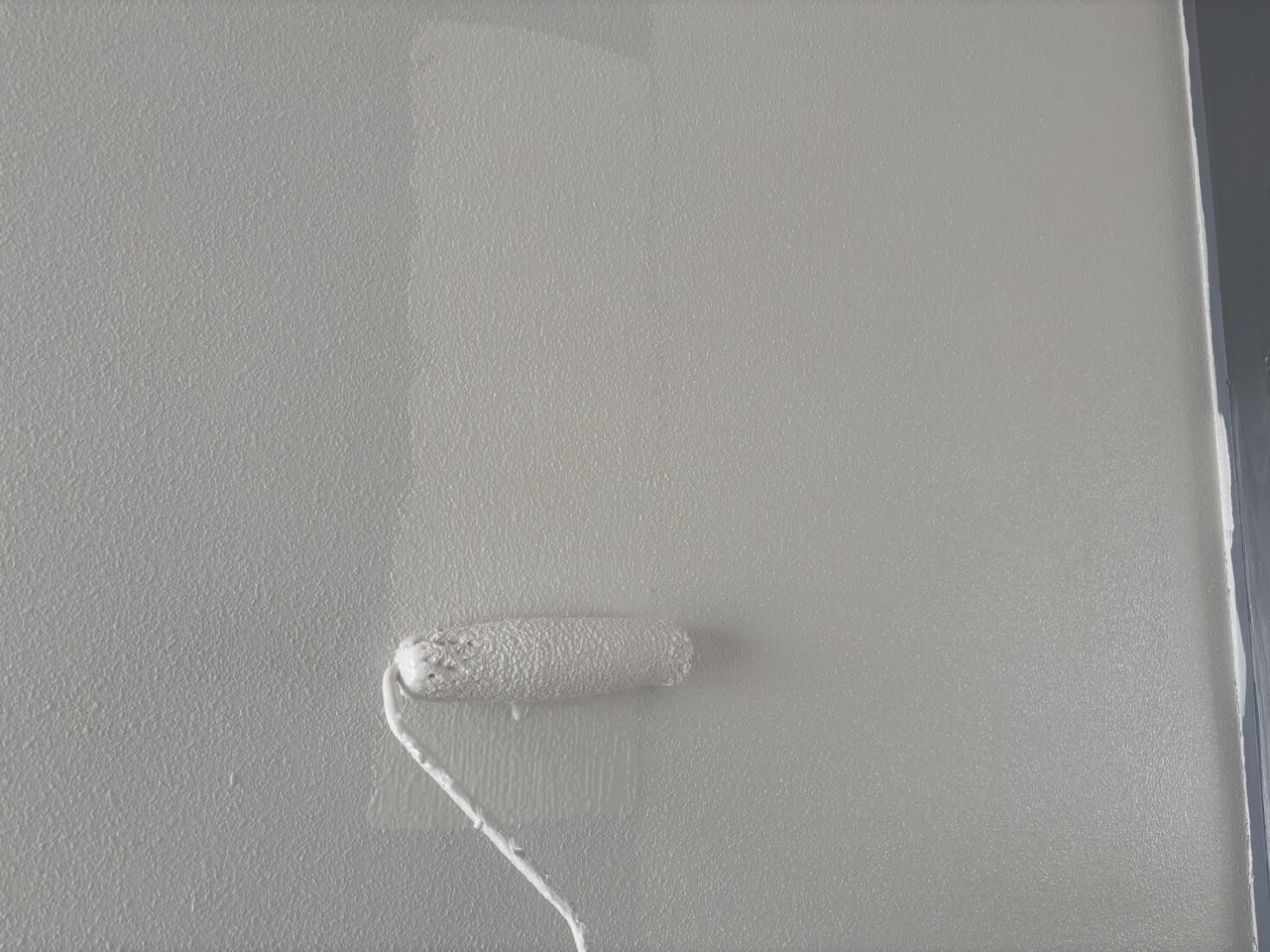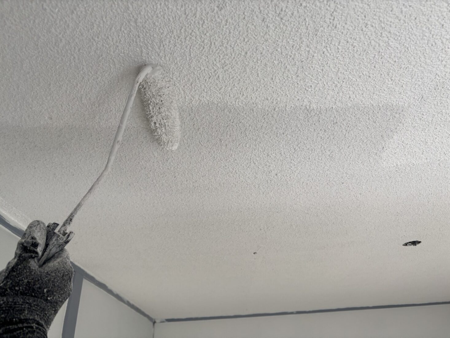 今日は、つくば市の築40年アパート室内塗装工事現場で、天井・内壁の仕上げ塗装を行いました。