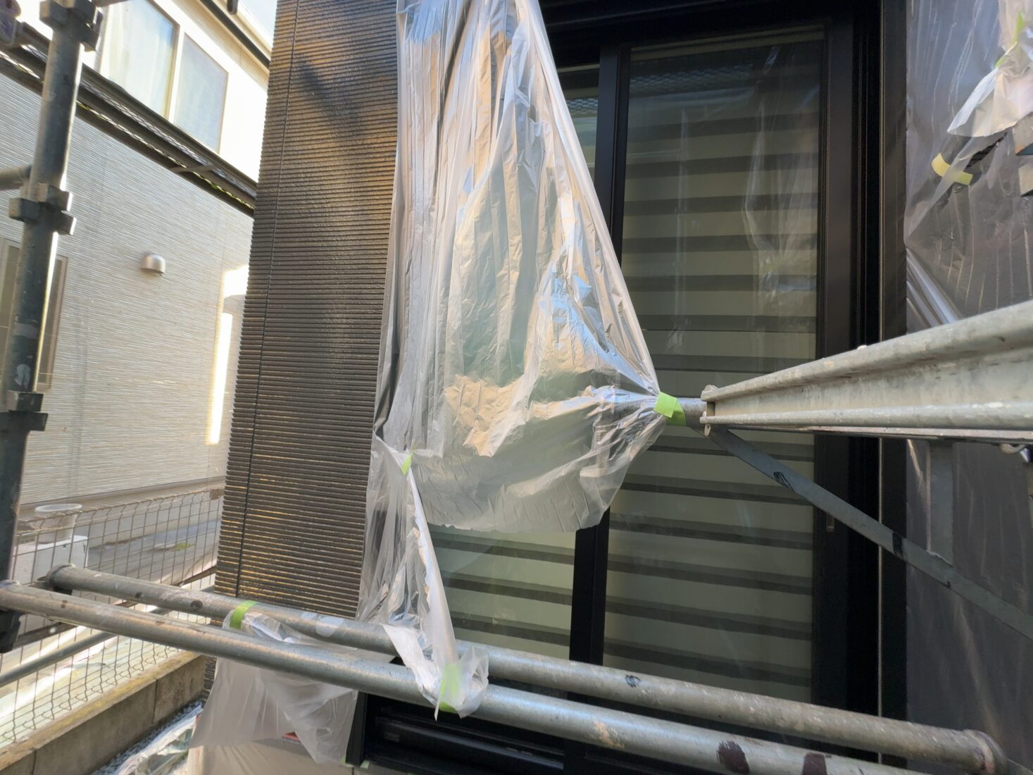 今日は、つくば市の住宅塗装現場で、外壁の上塗り1回目作業を行いました。