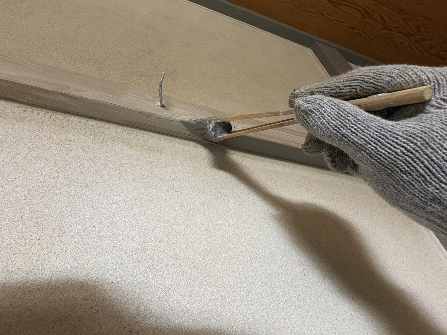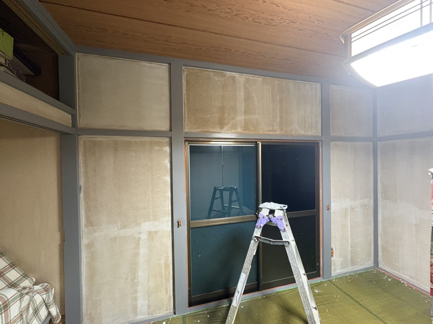 今日は、つくば市の住宅室内塗装工事現場で、木枠の上塗り1回目作業を行いました。