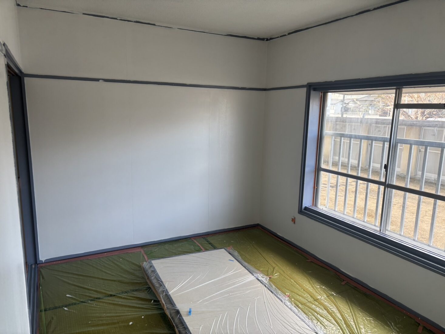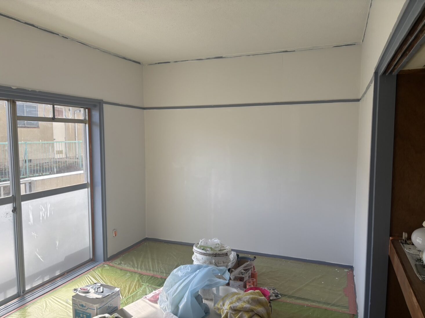 今日は、つくば市内のアパート室内塗装工事現場で、壁の仕上げ作業を行いました。