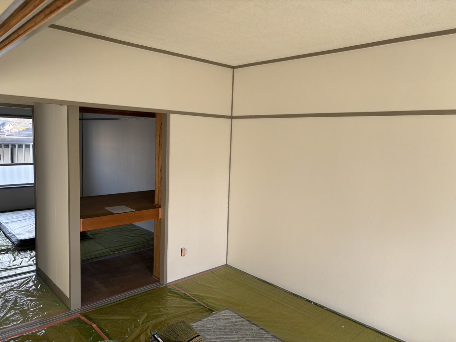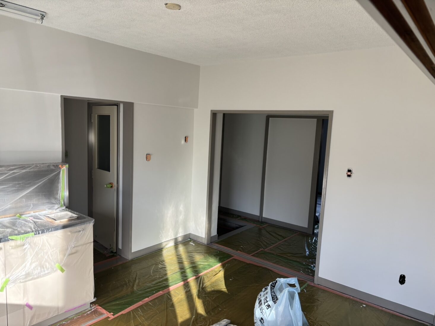 今日は、つくば市内の室内塗装工事現場で、木枠塗装の仕上げ作業を行いました。