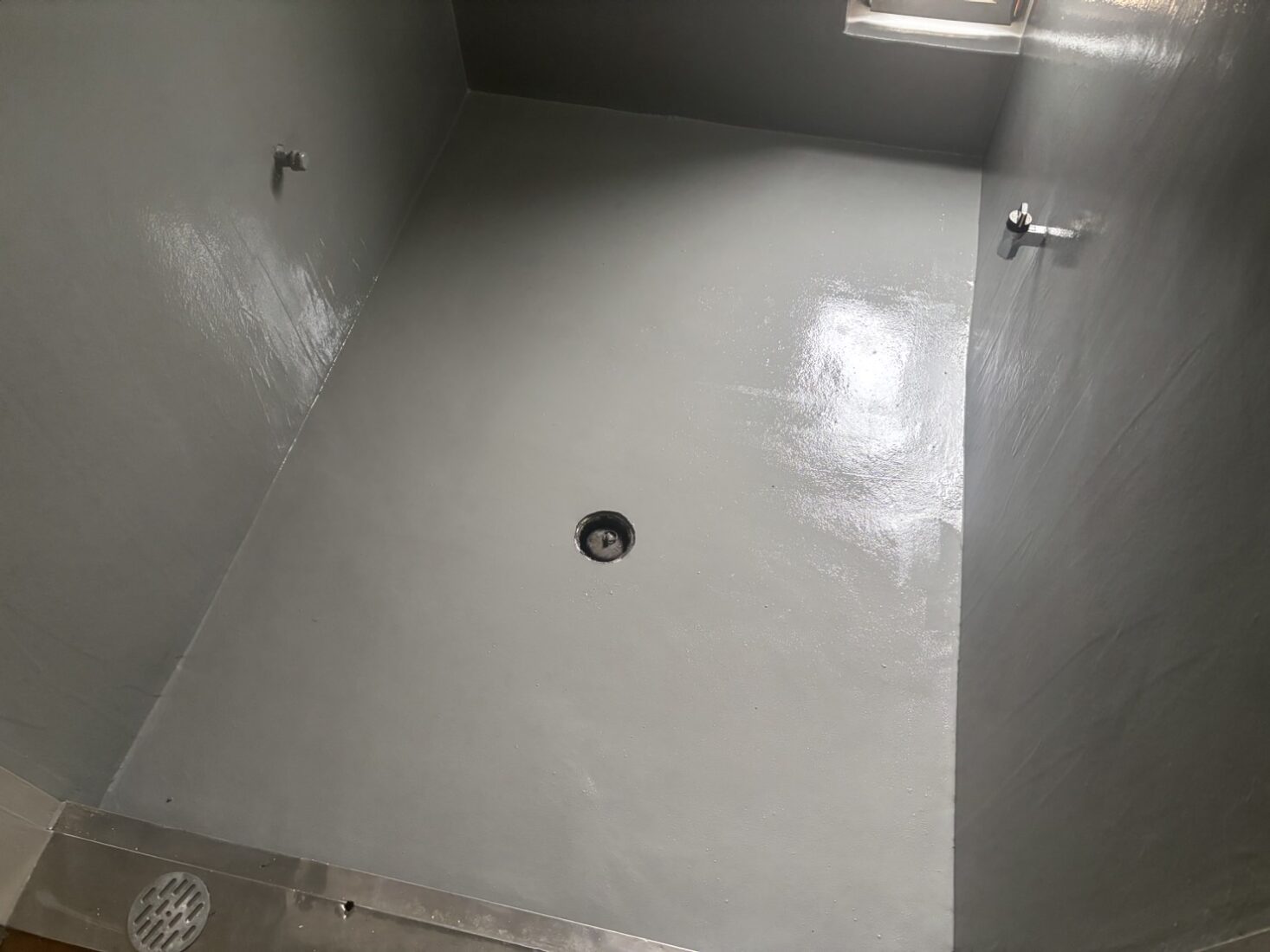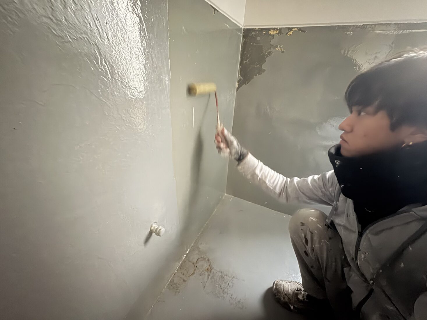 防水は、塗料を塗って乾いた後に塗りむらが目立ちやすいので、きりよく塗る場所を分けながら塗るのがコツです。