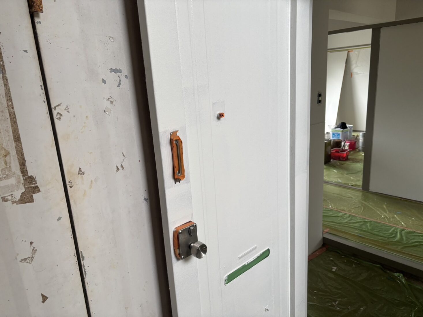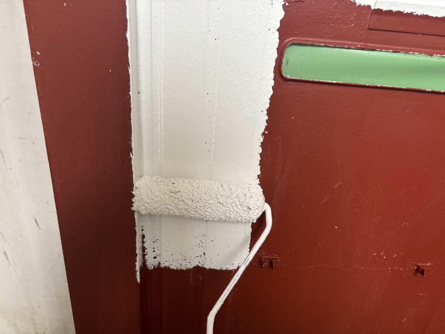 閉めてしまうと、ドアとドア枠がくっついてしまい、それを開けるとせっかく塗った塗料が剝がれてしまいます💦