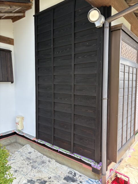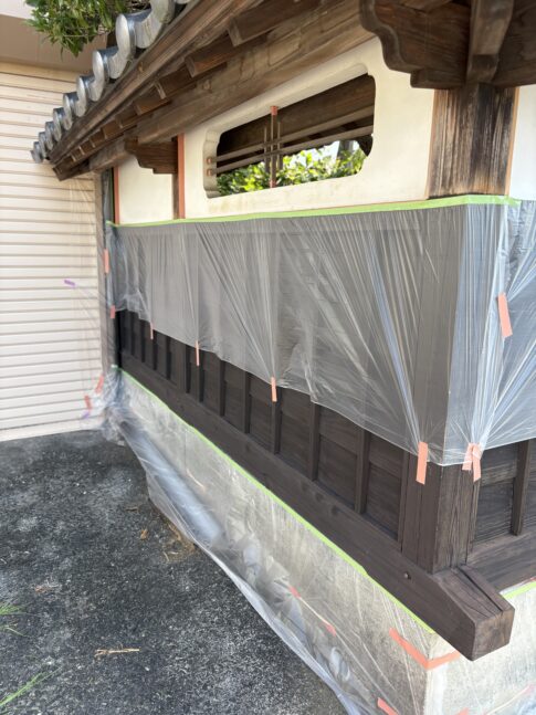 今日はつくば市内で塀塗装(木部)の上塗り1回目でした!
