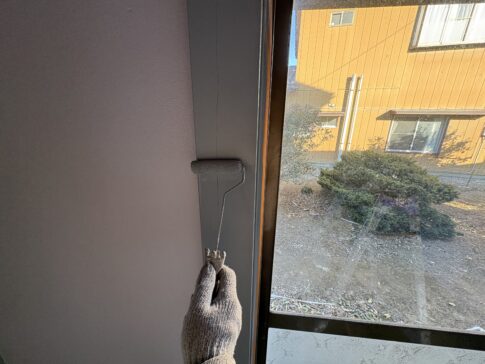 つくば市の住宅室内塗装工事現場で、木枠をグレーで塗りました!