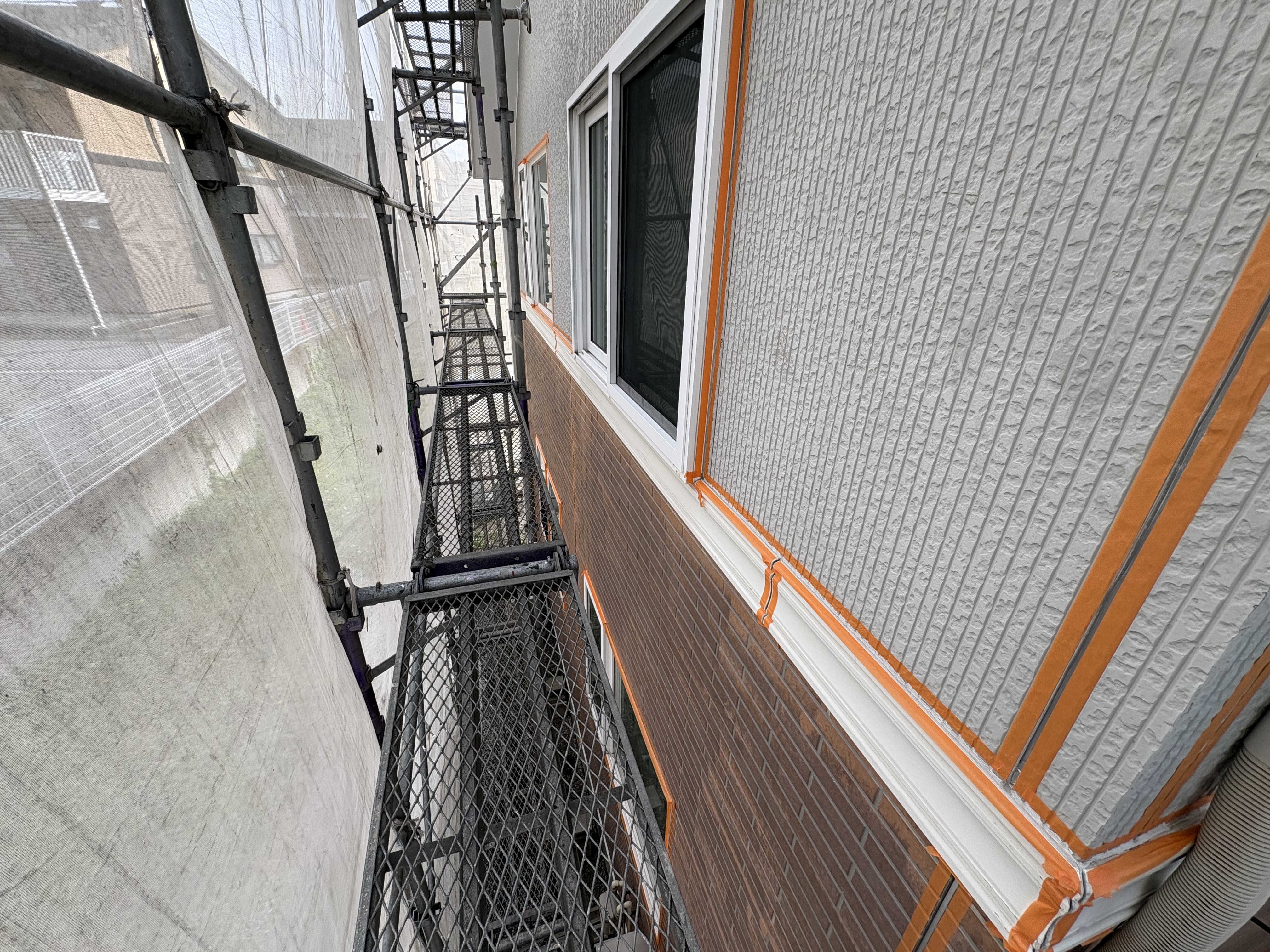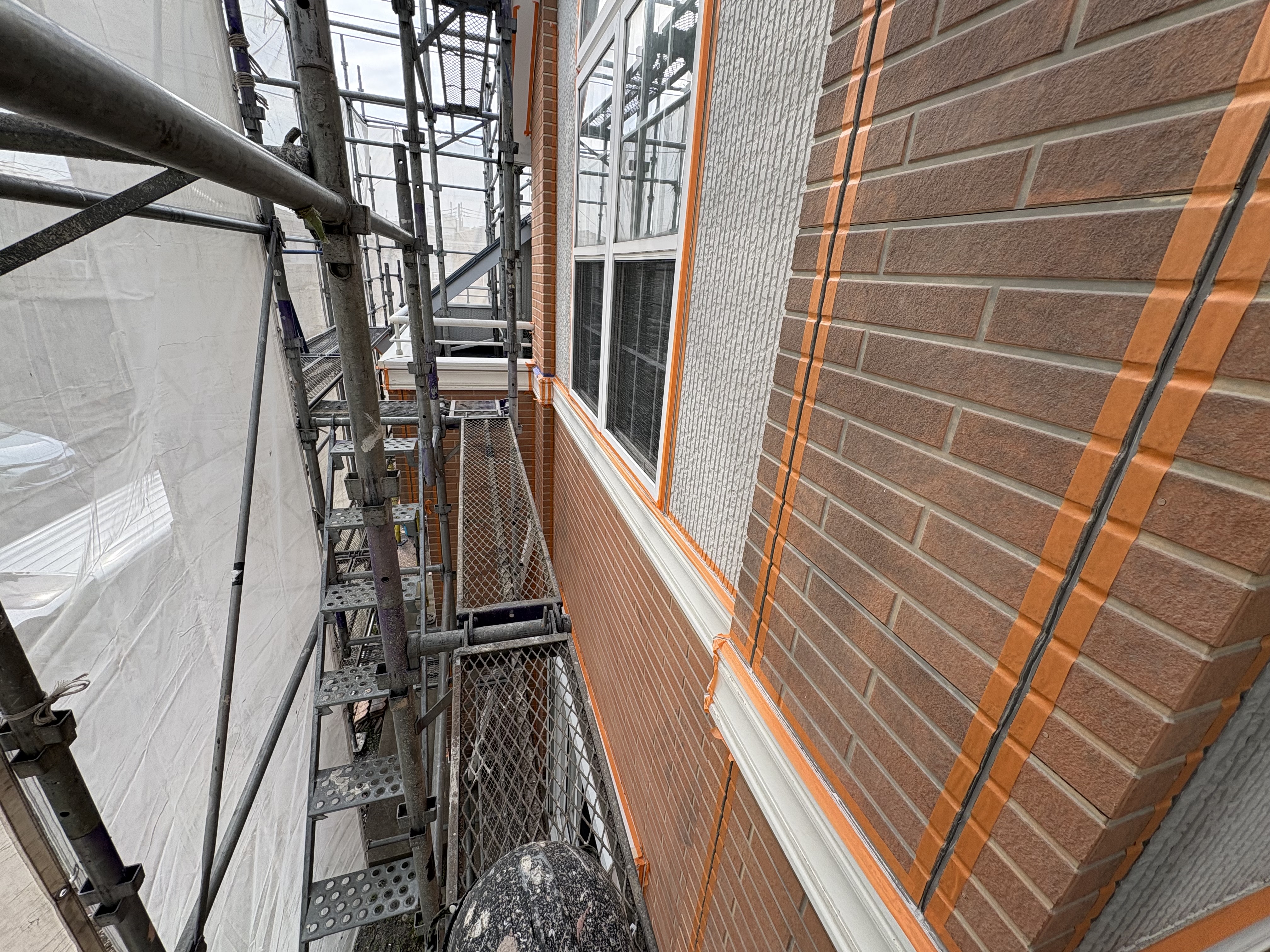 築26年│つくば市内の住宅塗装工事現場で、シーリング養生!